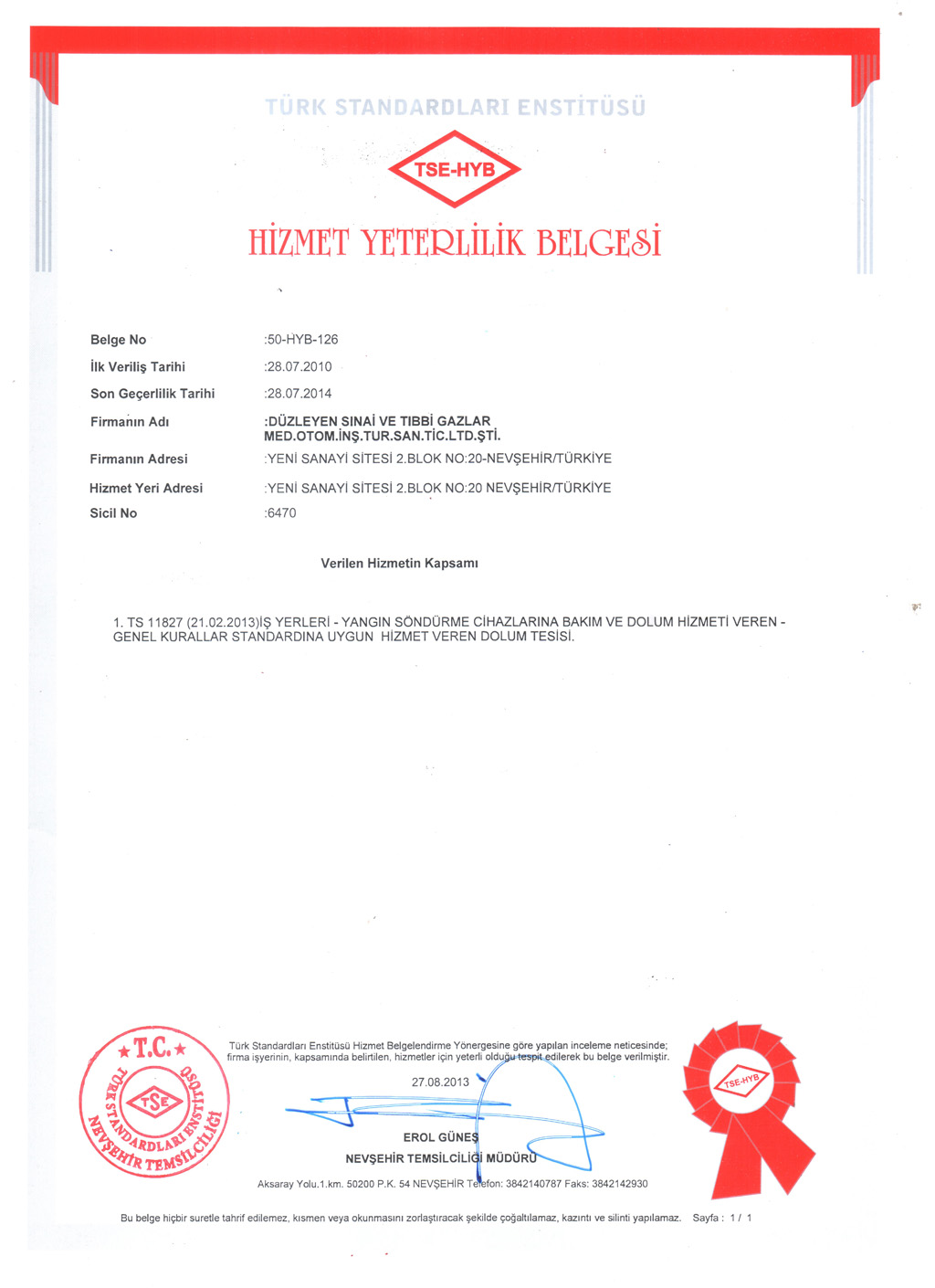 YSC Toz Sertifikası